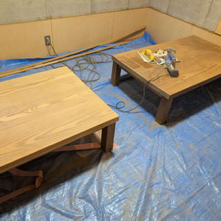↑📷️飲食店のカウンターとテーブルを塗装で仕上げる為に削りました。