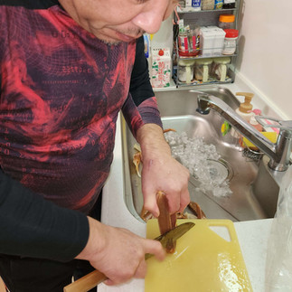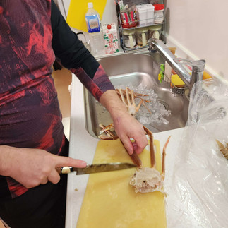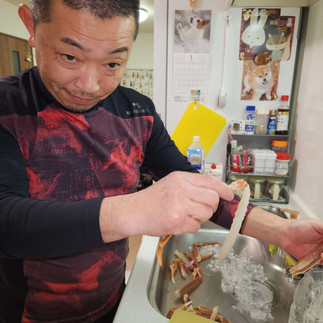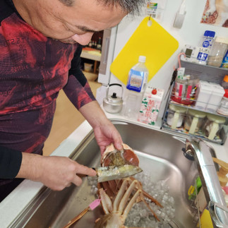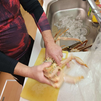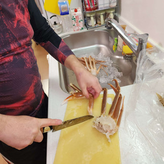 ↑📷️プロの料理人さんは活きたまま蟹の脚を外しますが、森下は調理前に蟹チャンを〆ます!